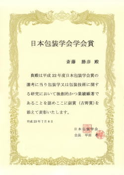 斎藤勝彦教授が日本包装学会学会賞を受賞